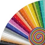 Beyond Bella by Annie Brady for Moda Fabrics features a single pattern that Annie has titled "On Point" on 30 colors of Bella Solids. 100% Cotton. This set contains 40 strips, each measuring approximately 2 1/2" x 44". 100% Cotton.