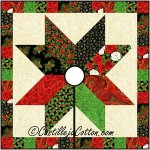 This beautiful tree skirt will be a wonderful addition to your holiday decorations. Easy to make using large blocks. Fabric shown in sample is Hoffman CA Fabrics Holiday Decadence Gold Metallic. Finished Size: Tree Skirt 39.5" x 39.5"- Skill Level: Advanced Beginner -Technique: Pieced - Pattern designed by Diane McGregor of Castilleja Cotton