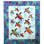 Turtle Trails is a dimensional Great Sea Turtle quilt pattern with turtles in three sizes designed by Annette Ornelas of Southwind Designs. It uses a folded and stitched technique to give the impression of curves WITHOUT curved piecing. Great Sea Turtle quilt with turtles in three sizes. Size: 62" x 74"