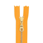 YKK #4.5 brass donut pull non-separating, closed-end zipper is ideal for purses and bags. Features donut sliders and has a #4.5 (4 mm) tooth size. Tape is made of polyester.